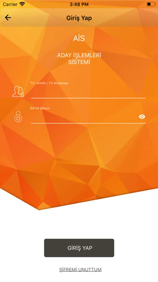 Uygulamayı, Aday İşlemleri Sisteminde kullandığınız kullanıcı adınız ve şifreniz ile giriş yaparak kullanabilirsiniz.