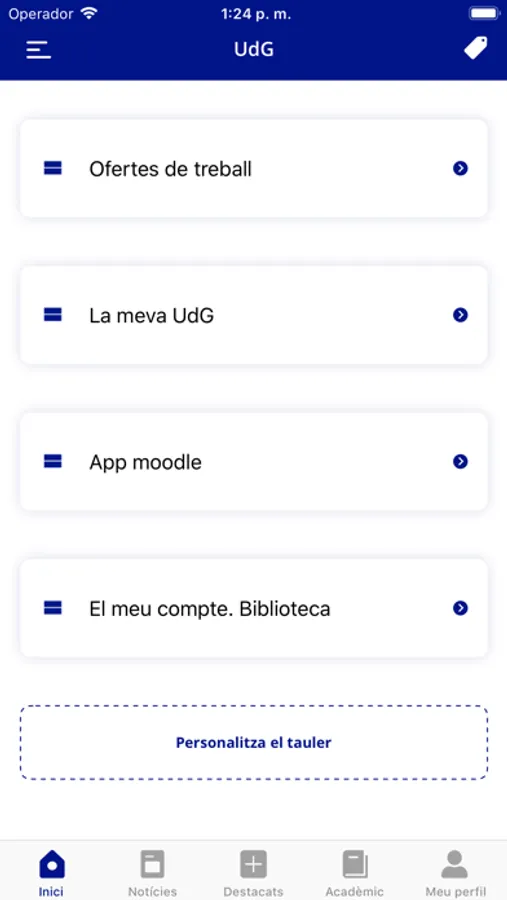 Aplicación oficial de la Universitat de Girona donde encontrarás dos perfiles: el público, con la oferta académica, noticias, etc. y el perfil privado, con contenidos personalizados según seas miembro del colectivo de estudiantes, PDI o PAS.