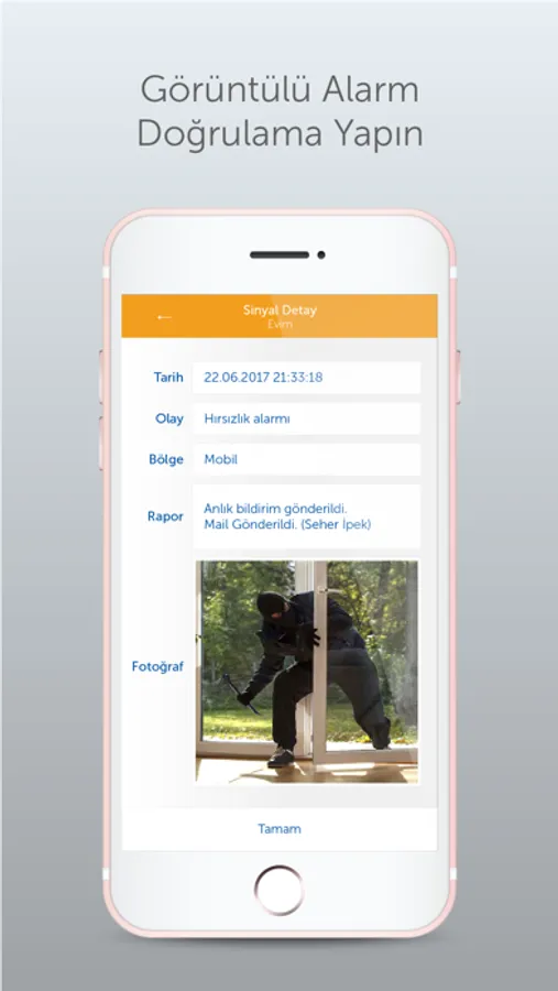 Panik Butonu ile Alarm Merkezine panik alarmı gönderebilir, ihtiyaç duyarsanız sireni de çaldırabilirsiniz.