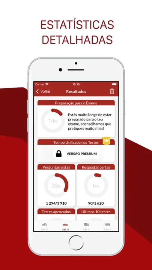 Testes de Código é a melhor e mais completa aplicação da App Store, conta com mais de 6.000 questões diferentes oficiais do IMT.