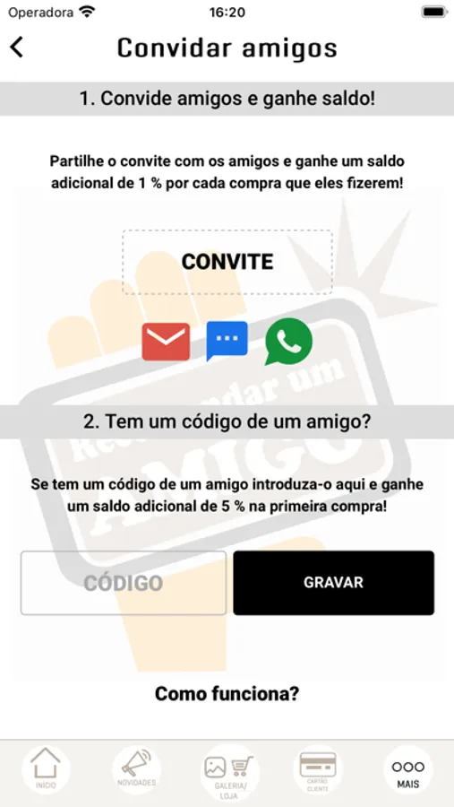 Mediante as politicas e regras do programa de fidelidade da MadMove Store o utilizador poderá através do seu número de cliente, acumular saldo no cartão cliente por um percentual do valor consumido para poder trocá-lo por descontos ou prémios em compras futuras.
