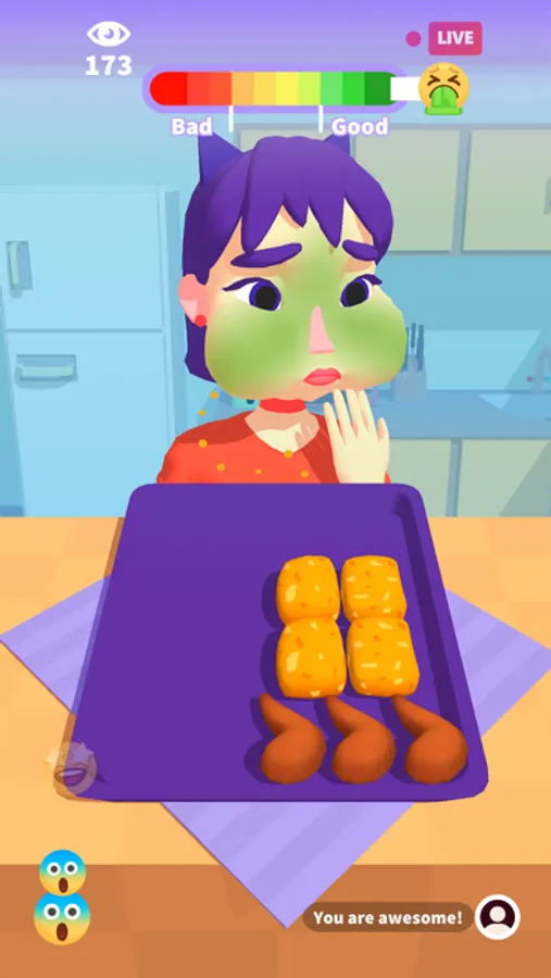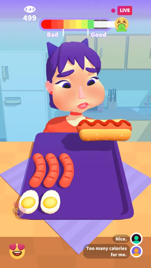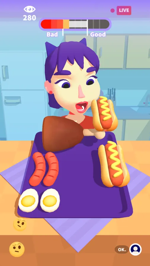 Become the ASMR Eating blogger! Manage the amount of food you eat. Take as much as you can, so that the viewers are happy and keep coming to your streams, but be careful not to overtake it or you'll puke...