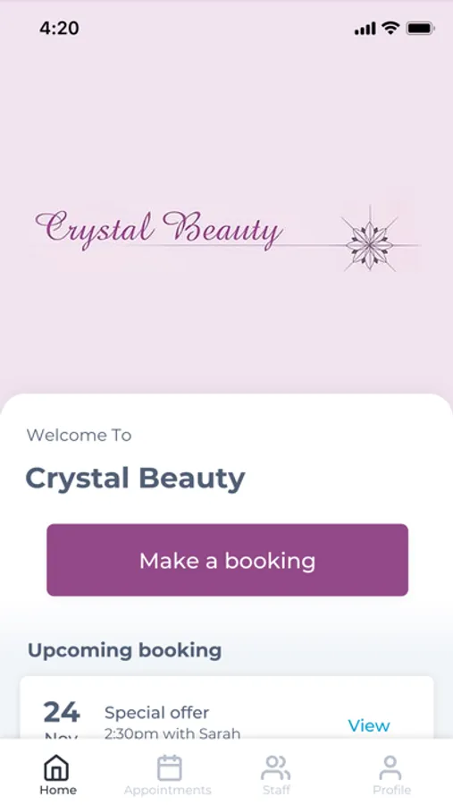 The Crystal Beauty app makes booking your appointments and managing your loyalty points even easier. You're just a few taps away from feeling good and looking great!