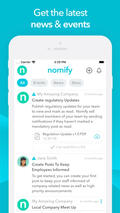 Nomify powers your digital workplace and connects you to your employer. Receive policies & documents, participate in a recognition program, share news & events and book staff leave.