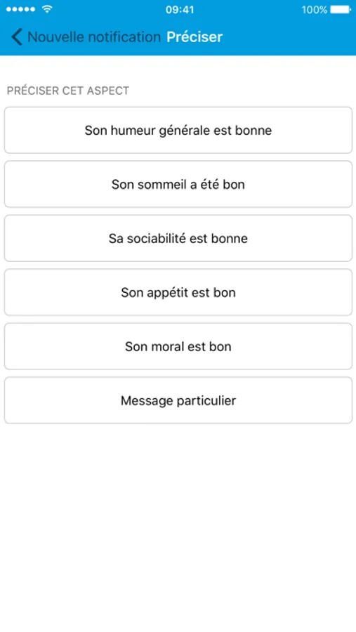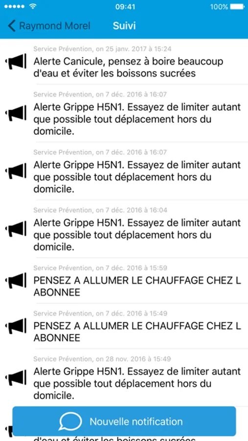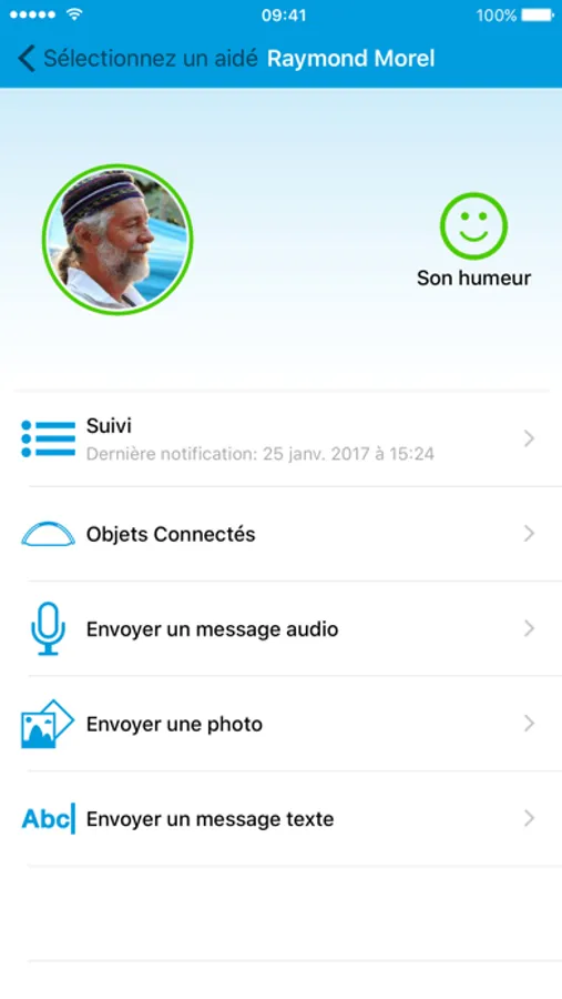 Elle vous permet de consulter les dernières notifications de chaque abonné, de créer de nouvelles notifications d'humeur ou de présence et d'envoyer des messages audio.