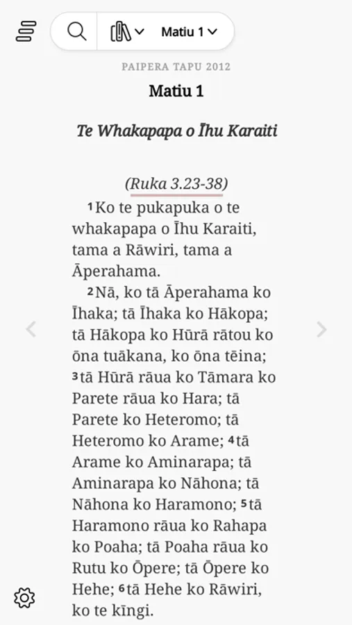 Te Paipera Tapu app is a simple and easy to use Paipera Tapu in your pocket. We’ve intentionally made the application simple to allow you to focus on God’s word without distractions. The interface to browse and search te Paipera Tapu is easy to use and can be made easier by tapping the screen twice to change fonts or make it easier to read at night. After the app has been installed, you have the convenience and added benefit of offline reading when the internet is not accessible.