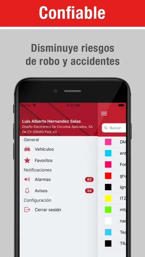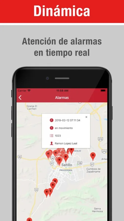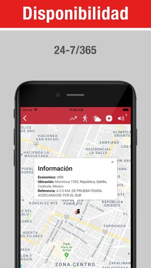 - Consulta el detalle de cada unidad, su información administrativa, geográfica y alarmas.