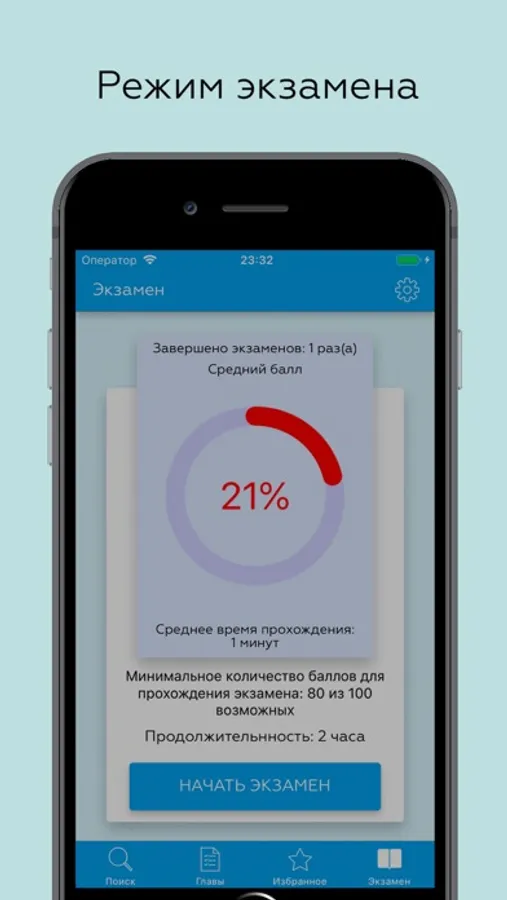 - Режим реального экзамена (бонус от работодателя при успешном прохождении).