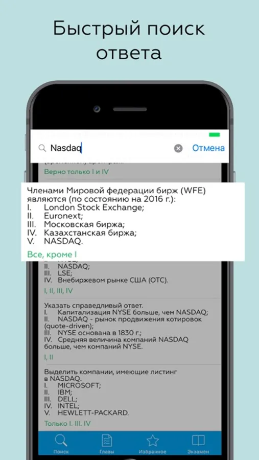 - Поиск вопроса по ключевым фразам, отличный помощник на экзамене.