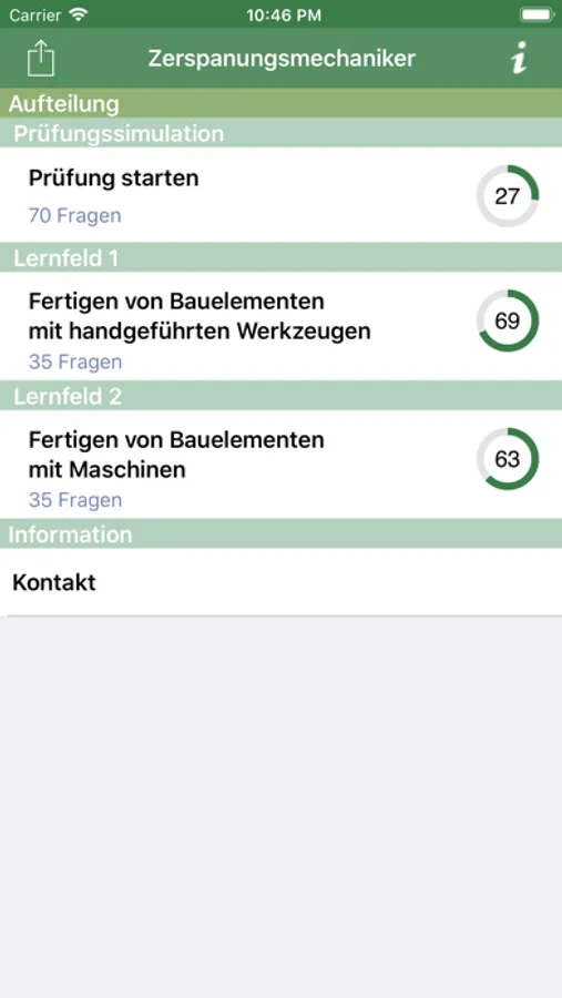 Nutzen Sie die Statistiken um Ihren Lernfortschritt optisch zu erfassen. Jedes Lernfeld umfasst Prüfungsfragen, die nur darauf warten von Ihnen gelöst zu werden. Auch eine Suchfunktion ist integriert, damit Sie schnell Ihr Ziel erreichen können.