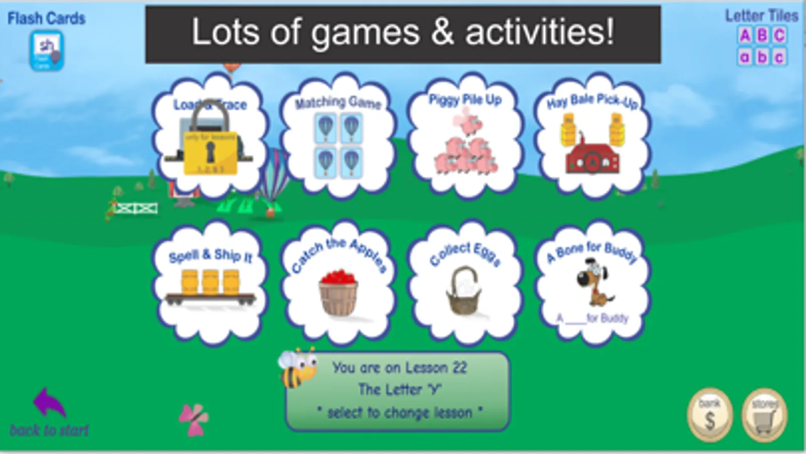 This is a phonics-based reading program for children ages 4-7. There are 31 lessons that will help you teach your child the sounds and rules in a cumulative, repetitive manner. Your child will have fun practicing reading and spelling while earning coins that can be spent in the stores. As your child plays the games, progress will be saved, so you can see where your child needs help.