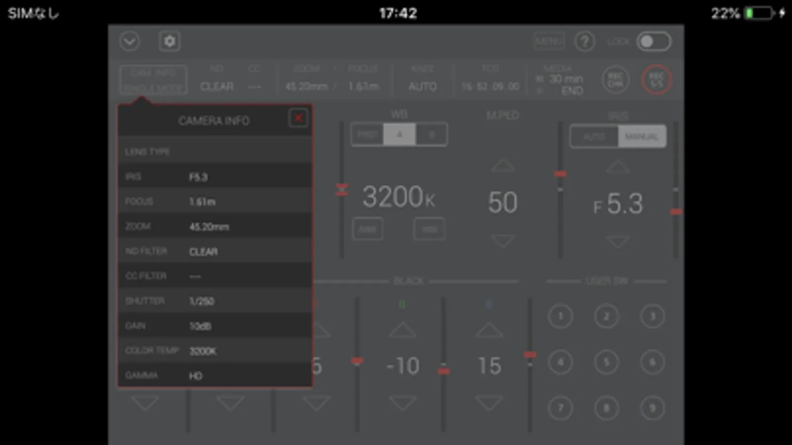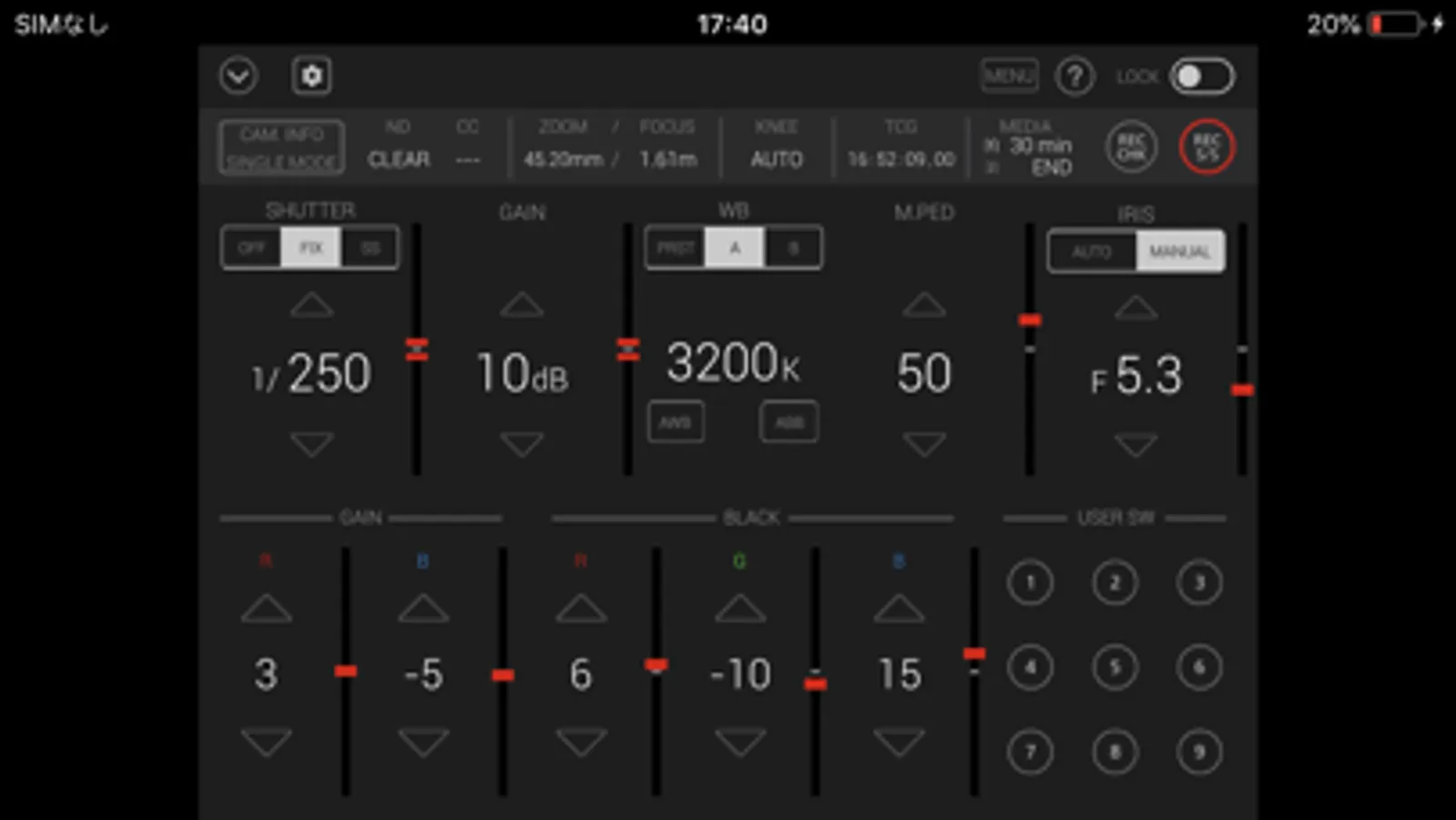 Buttons such as user buttons and REC S/S button in screen can manipulate camera recorder.