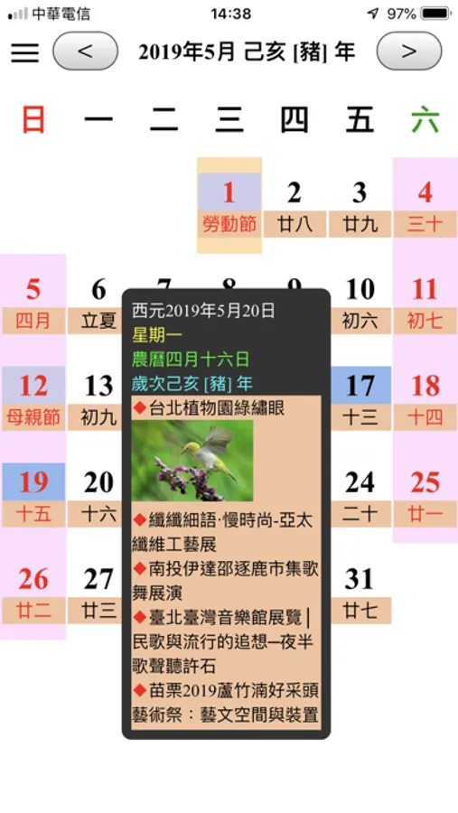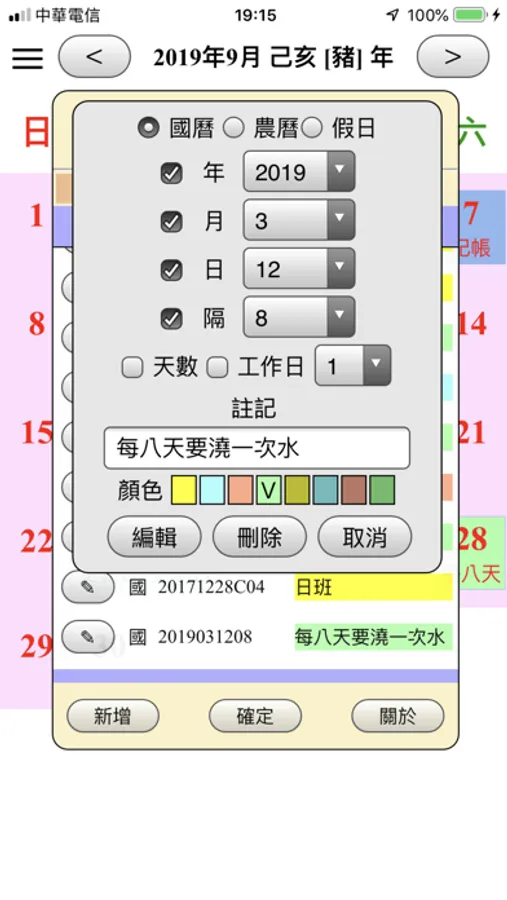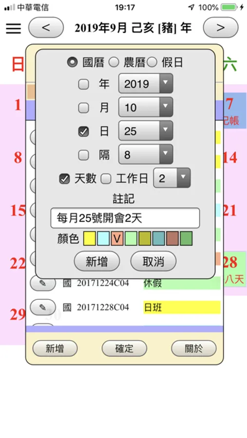 6.可以在簡單日曆中新增特別的日期到系統行事曆中, 顯示時會以不同顏色區分, 也可以隱藏其它系統行事曆, 可以用來區別工作和家庭的行程