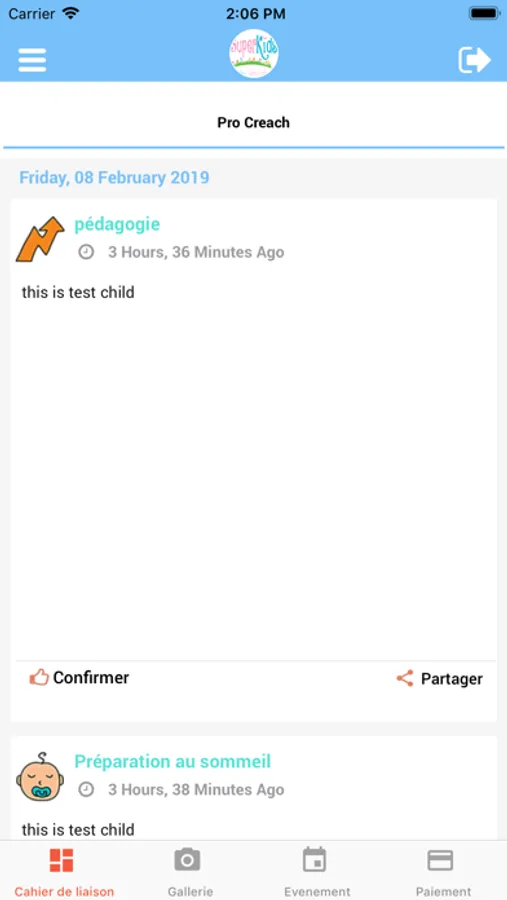 Superkids App est une application dédiée à la communication en temps réel entre les parents et notre établissement.