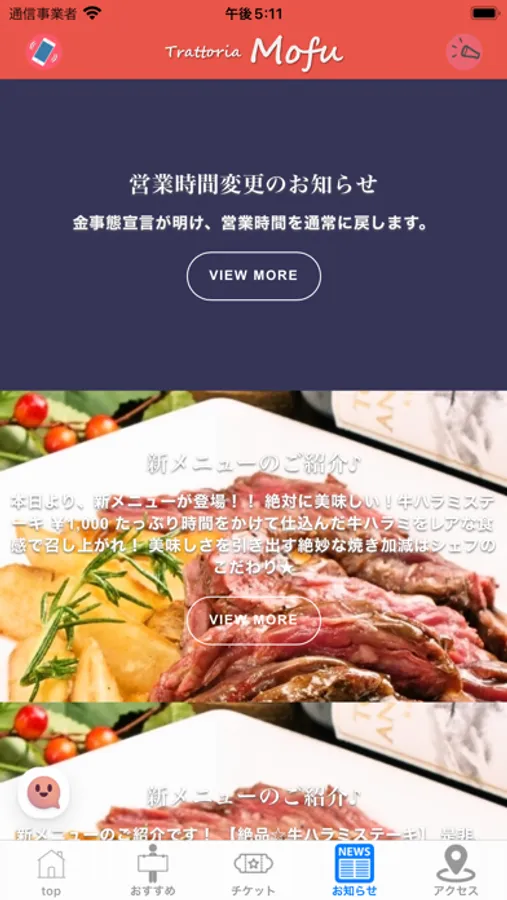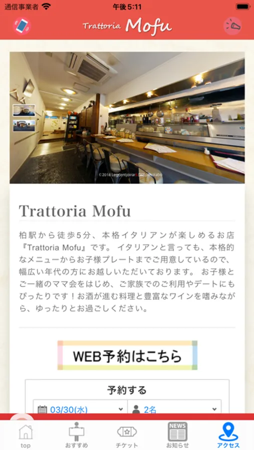 Trattoria Mofuアプリは、千葉県柏市中央2丁目にあるイタリアン「Trattoria Mofu」の公式アプリです。