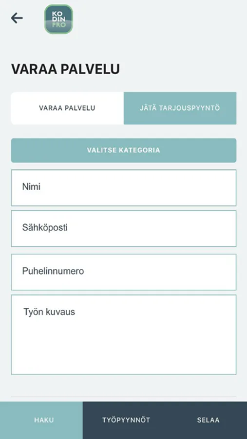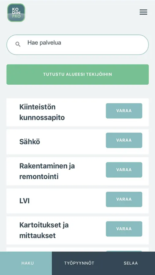 KodinPro® on verkko- ja mobiilipalvelu, josta kuluttajat voivat tilata kotiinsa ja vapaa-ajan asunnolleen erilaisia palveluja kuten LVI-työt, sähköasennus, rakentaminen, remontointi, nuohous, siivous tai pihatyöt. Palvelut tuottavat KodinPro®-palveluun rekisteröityneet yritykset. Katso apu juuri sinun tarpeeseen!