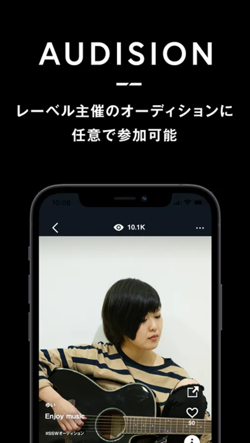 専用のハッシュタグを付けるだけ!レーベル主催のオーディション(不定期開催)に任意で参加できます。