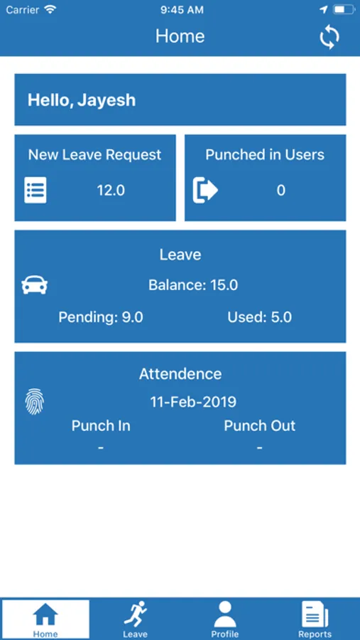 - The user can get available Leave details via App.