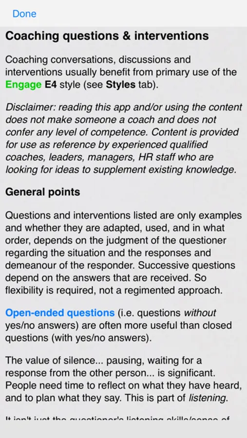 The app is aimed at life coaches, business coaches, career coaches, sports coaches, HR professionals, counsellors, psychologists, negotiators and line managers who want to improve their question and influence skills to be more successful in life and work.
