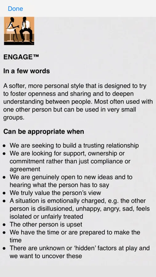 Each person tends to have their own one or possibly two preferred influencing and conversational styles - the way they interact with and engage other people in conversation and discussions. Unless they are very self-aware or have been trained, each person tends to use just one style (their preferred style) in all situations. [Think of a friend or colleague who is calm and unemotional. Think of another friend or colleague who is excitable, loud and expressive. Ask yourself how often do you see either of them behave exactly like each other? 'Probably not very often' is the most common answer.]