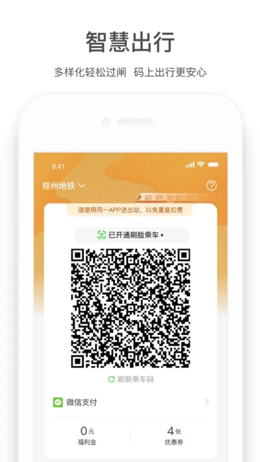 扫码/刷脸乘车,快速进出地铁站,支持支付宝或微信等第三方支付渠道,节省排队购票时间