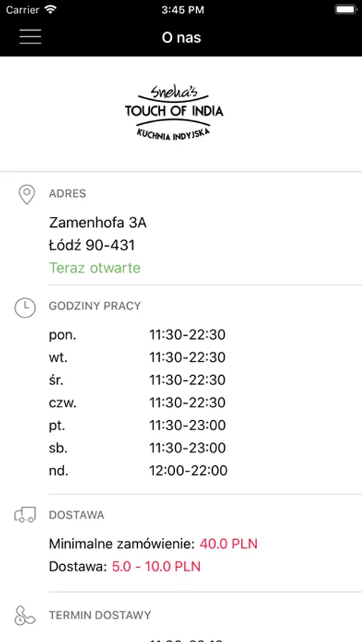 Oprócz zamówień online aplikacja pozwala sprawdzić: