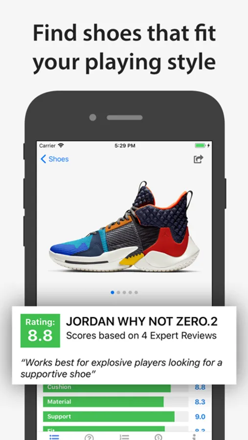 As of August 2020, the app includes ratings for 128 shoes based on 656 performance reviews by real sneaker experts and new reviews are added all the time.