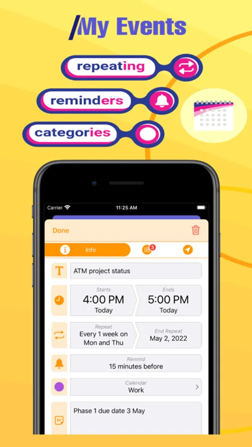 SET RECURRING events on daily, weekly, monthly or yearly basis.