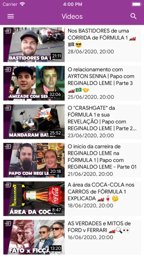 - Acesso a todos os vídeos do canal BOTECO F1;