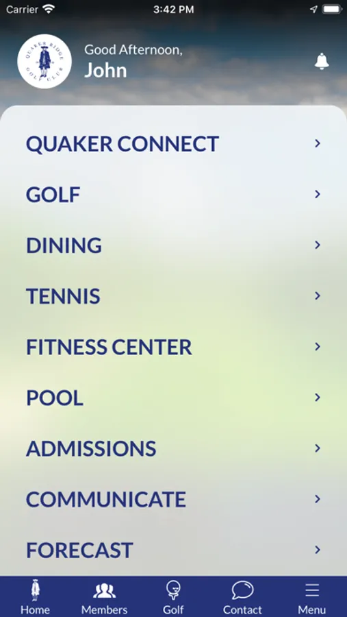 Welcome to Quaker Ridge, where the experience of our members is our primary focus. We have developed a custom app to enhance your experience on and off property. With a touch of a button, you can make a tee time, request your clubs from the bag room, view and pay your statement and use a directory of amenities and services. We hope you enjoy the new, digital Quaker Ridge experience.