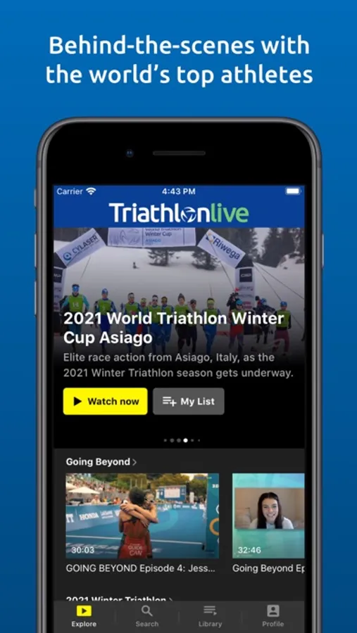 Get closer to the action and watch your favourite races live and on-demand from the World Triathlon Series (WTS), ITU World Cups, Super League Triathlon and more. Watch interviews with your favourite athletes, discover training tips from the biggest names in the sport, exclusive features and behind-the-scenes footage.
