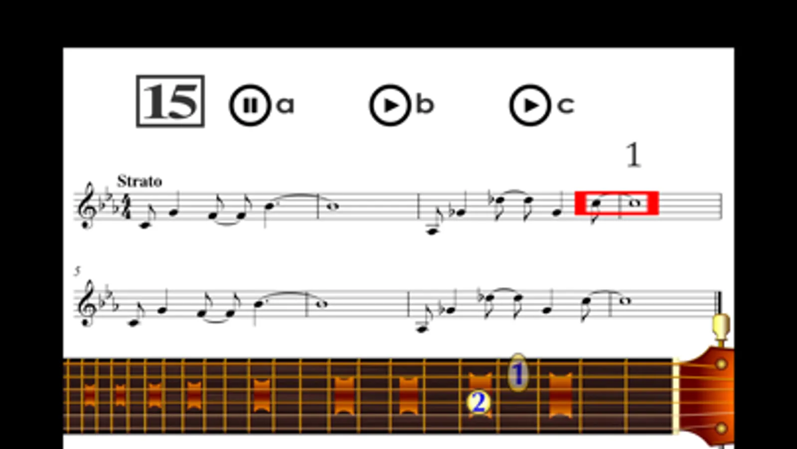 On each lesson you will see a sheet music and you will listen what is written on it. You will see animations of the beats, the notes on the staff and the numbers of the fingers of the left hand on the guitar fretboard. This allows you to relate what is written on a score with that which is played on the GUITAR.