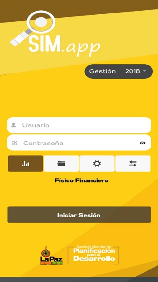 La aplicación Sim app, permite la consuta por gestión, de la ejecución físico financiero del Gobierno Autónomo Municipal de La Paz y la prosecución del flujo de ejecución de una carpeta