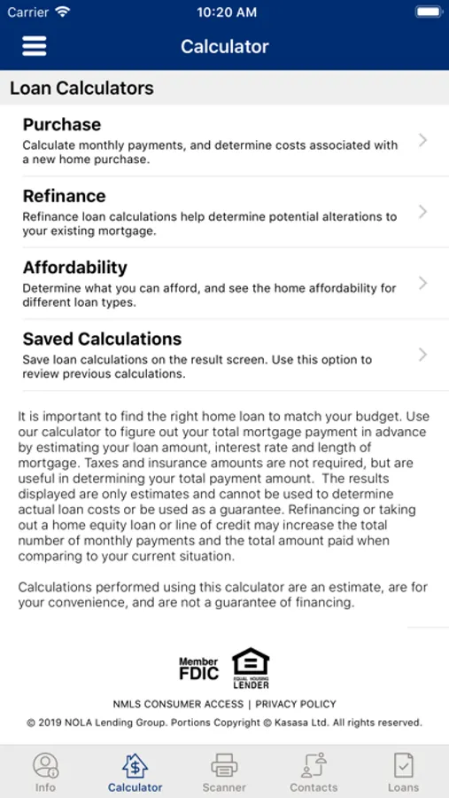• Easily access contact information for your NOLA Lending Group Loan Officer and share this information with your family and friends.