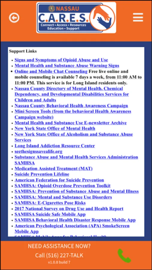 • Nassau CARES is a digital resource for Nassau County residents with the main goal of accessing substance use and mental health treatment & information easier.