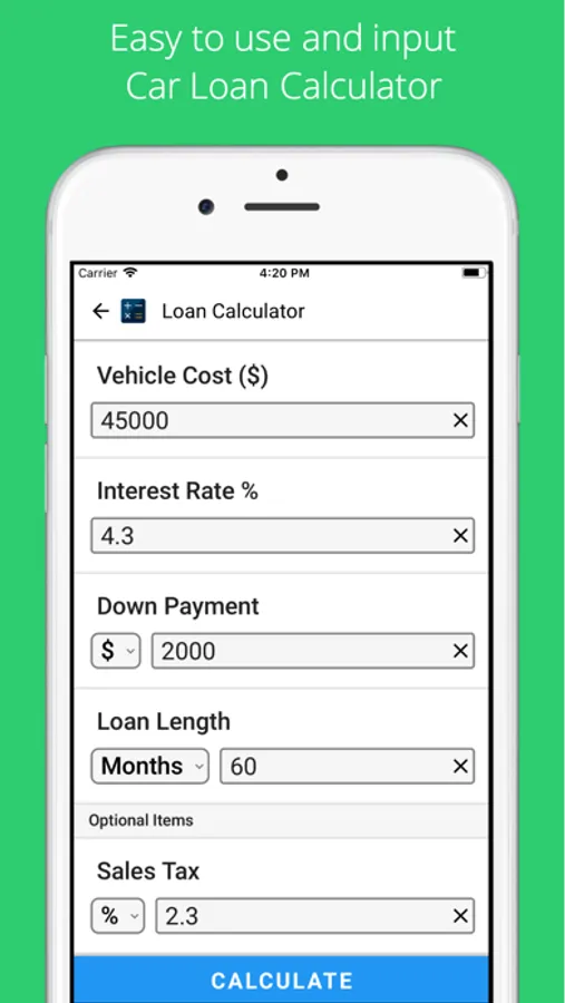 Using the Vehicle Price you can calculate how much you will pay each month.