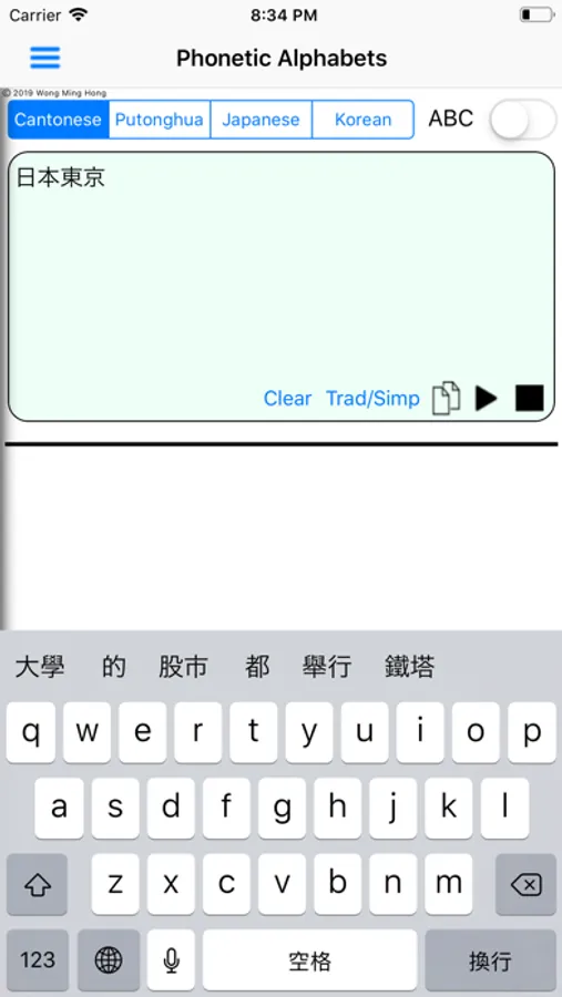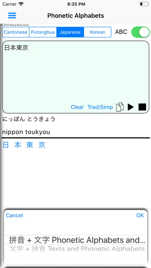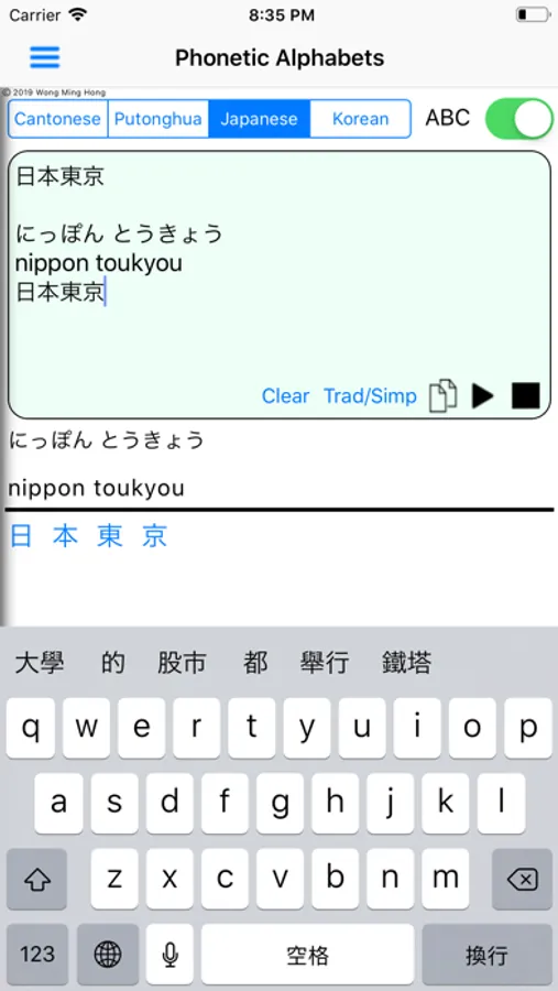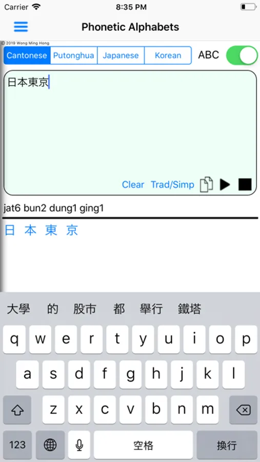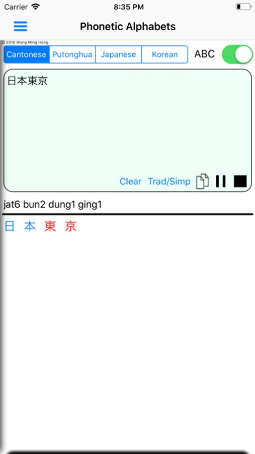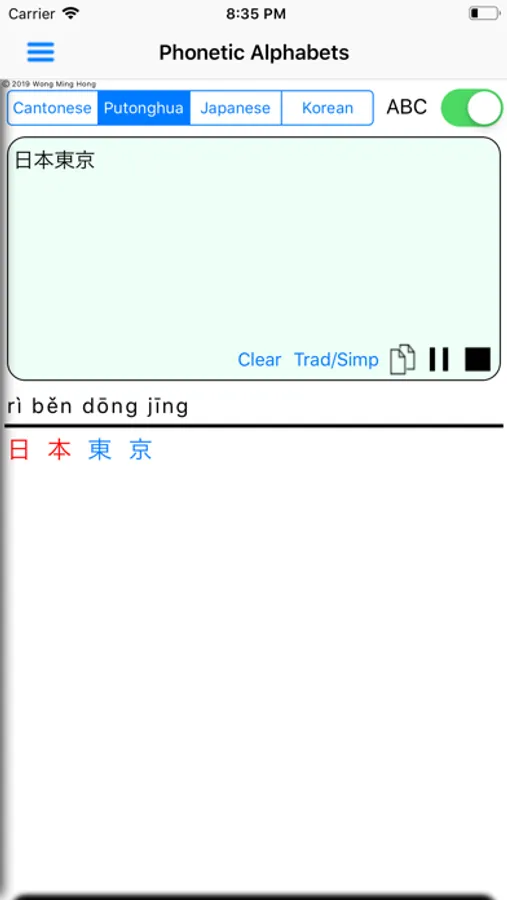 1. This application provides the enquiry of Putonghua pinyin, Cantonese Jyutping, Japanese Kanji to Hiragana and Romaji and romanized Korean. Also, the translation between Traditional Chinese to Simplified Chinese is available.