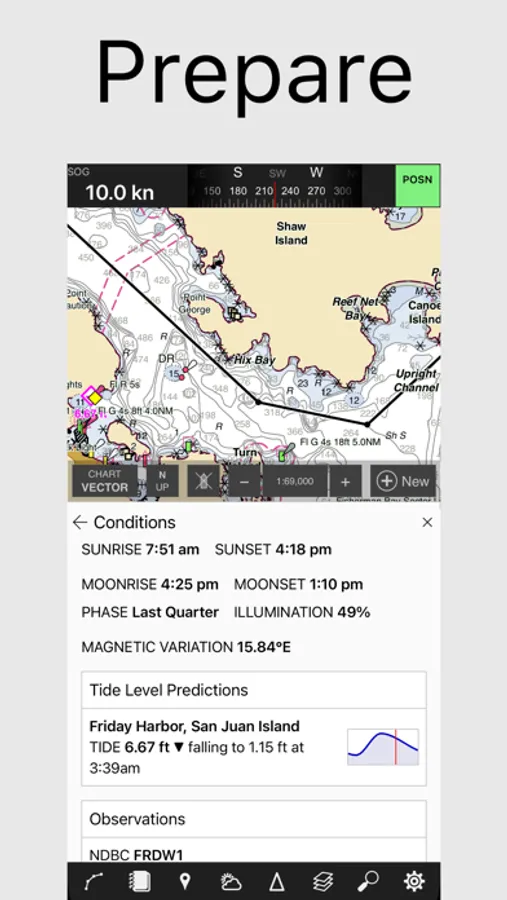 * Downloadable charts, tide and current predictions, and ActiveCaptain places for offline use