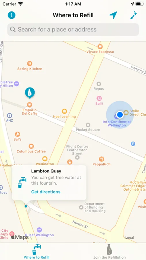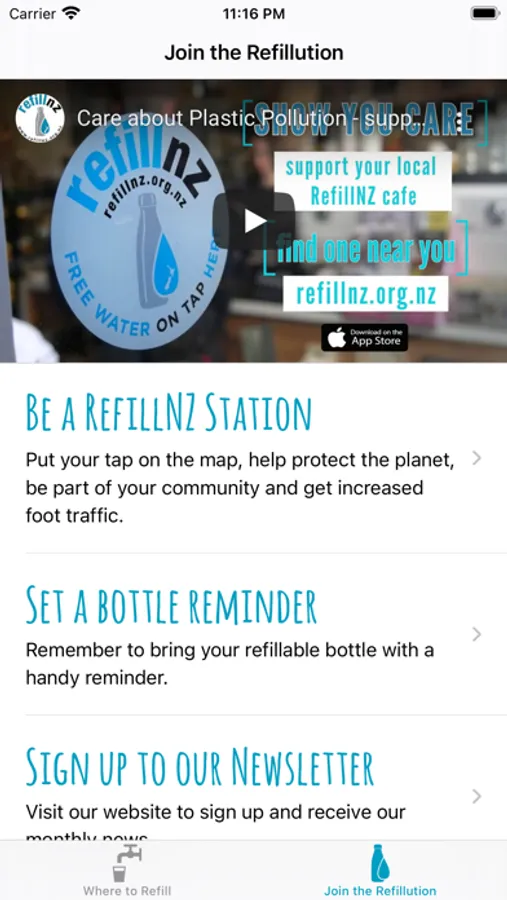 • Use this app to refill your reusable water bottle for free at nearby water fountains as well as participating RefillNZ cafes, bars, restaurants, libraries, pools, leisure centres, dentists and more.