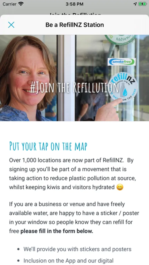 • If you wish to become a Refill station on the map or help out as a volunteer, you can sign up directly from the app.