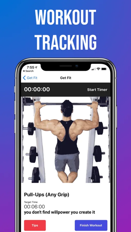 Our workout-tracking conveniently tracks the time and reps of your workouts, allowing you to focus on the rep at hand. It also includes motivational support through quotes to push you and motivate you through your workouts.