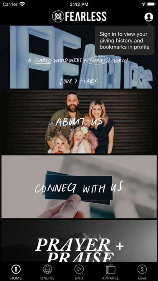 Use our app to connect with all things associated with Fearless LA. Access service times and locations, listen to our podcast, check out our music, view our apparel, and much more!