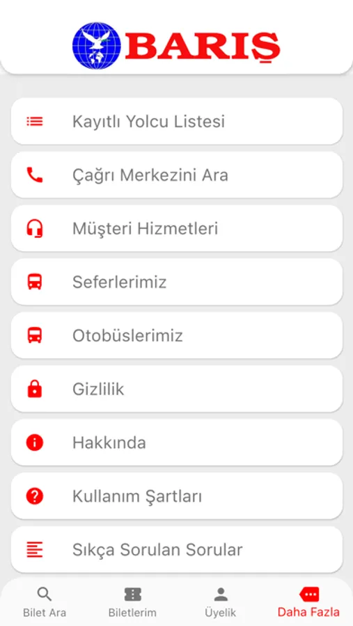 Lüks Barış Seyahat’in şehirlerarası ulaşım biletlerinin satılmasını sağlayan bir iPhone uygulamasıdır.