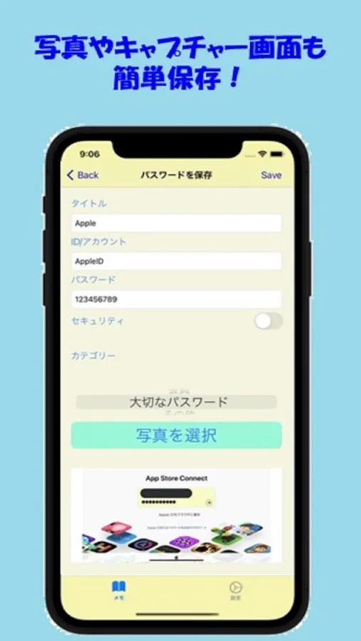 パスワード、ID、アカウント名を入力するのが大変な時写真だけを貼り簡単に保存することが出来ます。