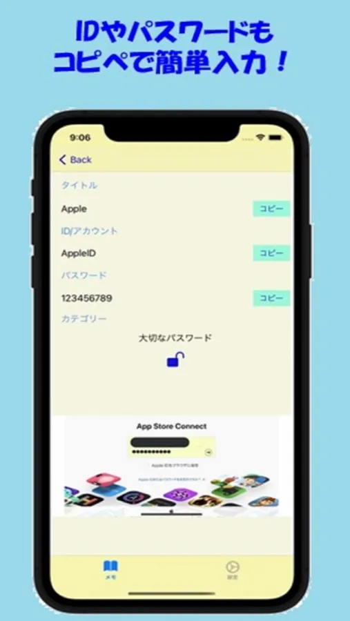 ・アカウント/ID、パスワード コピー機能