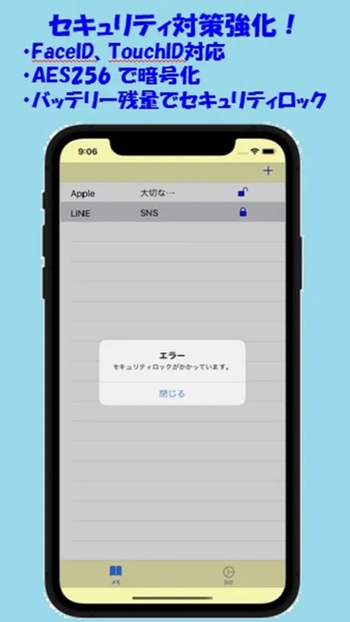 ・パスコード、生体認証(FaceID、TouchID)対応