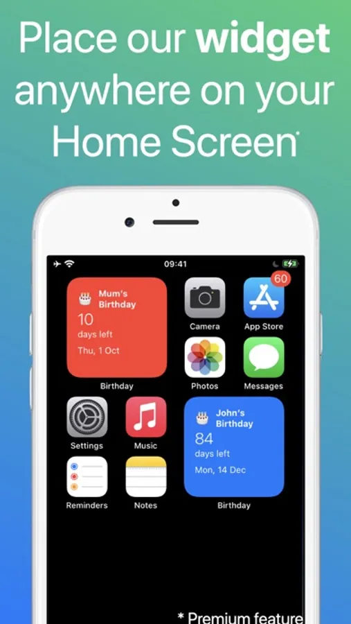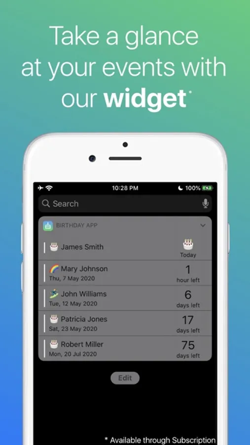 • Check your birthdays on the Lock Screen or Home Screen with our widget (Premium feature)