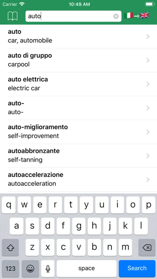 Easily translate between Italian and 20 other languages with offline and online dictionaries. See translations instantly while typing. Listen to pronunciation. Quickly check images associated with the word or its translations.