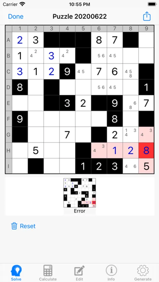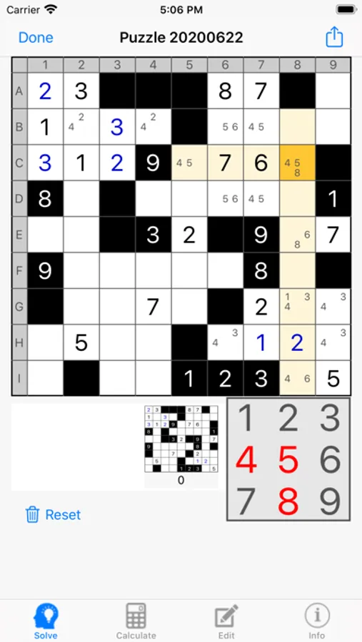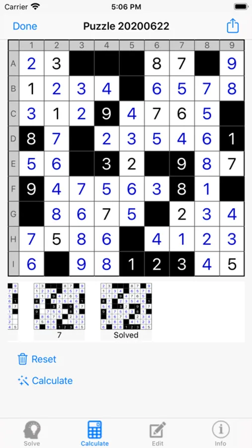 With the app you can daily download new puzzles and solve them for free. There are puzzles in different difficulty levels, so that everyone will find something for their level of knowledge. If you can not find a solution, the integrated solver helps to find the next steps. The integrated solver is able to solve even the most extreme str8ts puzzles with a backtracking algorithm. So far, we've only found two puzzles where the one-step backtracking algorithm did not find a solution and needed support from the user.