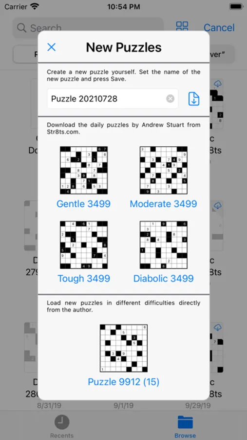 As a further function, you can even enter puzzles, which are available for example in printed form, by hand. An import via a text format is also possible.